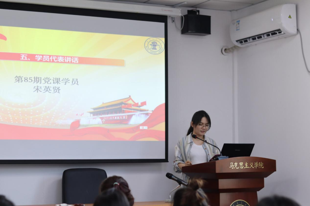 学员代表宋英贤同学从实际出发,表示本次党课培训会努力做到三个“学”:端正态度,严肃认真学;入脑入心,全面系统学;知行合一,转化运用学,同时希望每一位发展对象都能把此次培训作为新的起点,进一步提高党性修养、理论水平和工作能力。