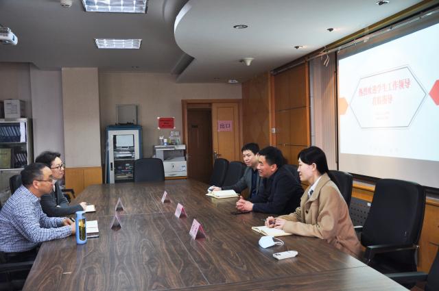 2021年3月12日上午9:00,校党委副书记许安国、学生工作部部长王德瑜、研究生工作部部长刘燕莅临我院调研座谈,无码a片 党委书记孙冬梅、院长高正礼参加座谈。
