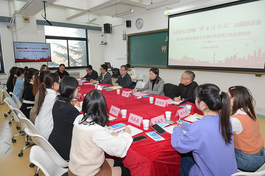 2020年12月25日下午,校党委书记黄泰岩参加联系班级无码a片 2019级马克思主义理论硕士班“师生话思政”主题座谈会,围绕“提升思想政治教育实效性”与马院师生进行深入交流。