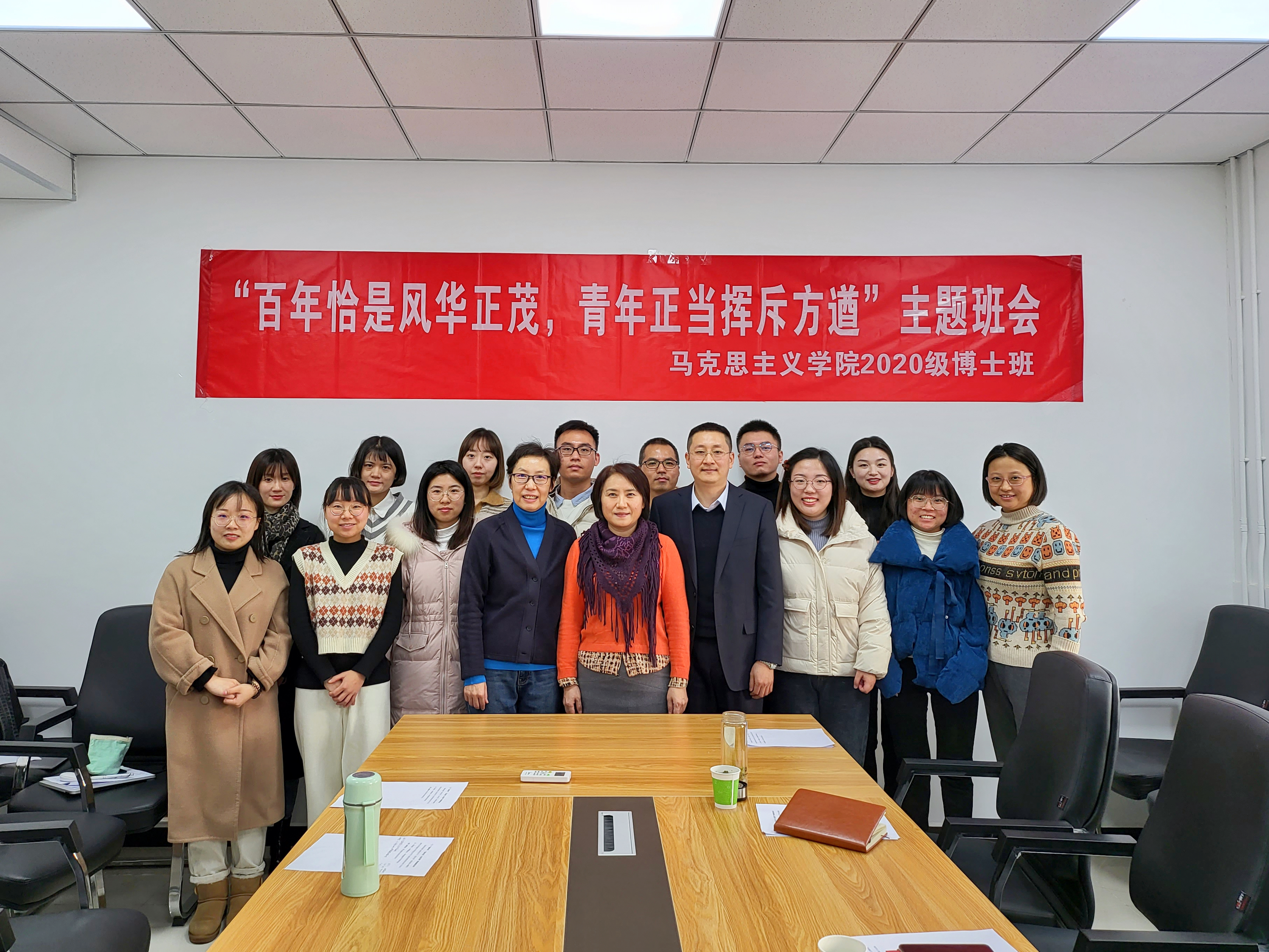 2021年12月14日上午,无码a片 2020级博士班开展主题为“百年恰是风华正茂,青年正当挥斥方遒”的班会。校党委常委、宣传部部长蓝晓霞出席班会。无码a片 党委书记孙冬梅、副书记副院长田永静、辅导员刘慧敏、班主任管前程、20博全体同学参加了班会。