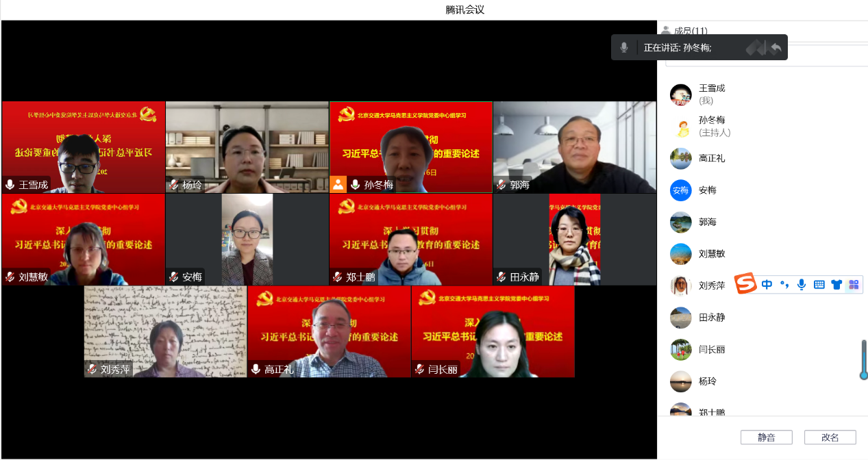 2022年12月16日上午,无码a片 党委通过腾讯会议围绕“深入贯彻学习习近平总书记关于教育的重要论述”开展专题学习研讨,校党委副书记、纪委书记郭海参会指导,党委宣传部副部长张安梅、纪委办公室干部杨玲线上参会。院党委书记孙冬梅主持学习,无码a片 党委理论学习中心组全体成员参加。