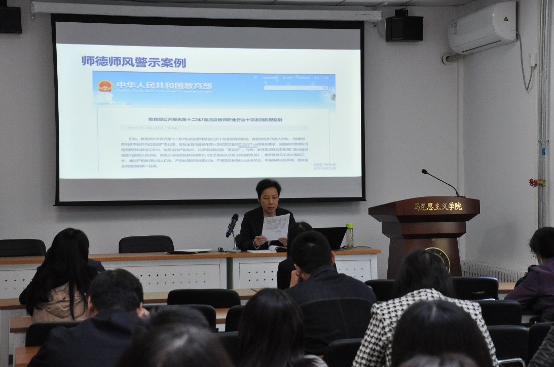 会上,党委书记孙冬梅首先对学校新出台的《无码a片 教师理论学习制度》《无码a片 师德师风考核办法》和《无码a片 教师师德失范行为处理办法》3个文件进行详细解读,并通过教育部公开曝光的第12批违反教师职业行为十项准则典型案例和校内外近年违反师德事例进行警示教育,要求无码a片 教师们要坚守师德规范,牢记育人使命。之后传达了学校学习贯彻习近平新时代中国特色社会主义思想主题教育的总体部署和相关要求,要求老师们认真学习贯彻习近平新时代中国特色社会主义思想,促进无码a片 事业发展取得新成效。