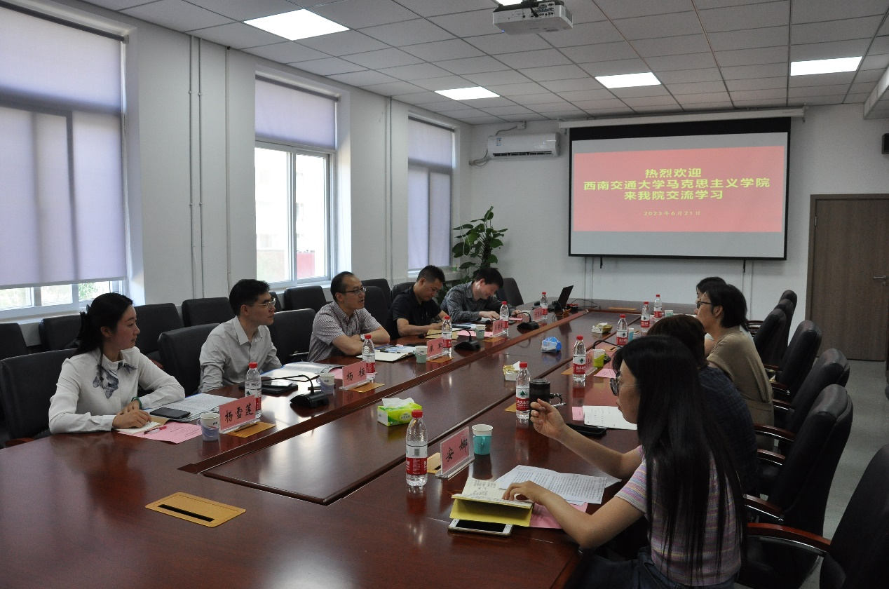 2023年6月21日上午,西南交通大学无码a片 党委书记廖军、副院长李学勇等一行5人来我院调研交流,无码a片 党委书记孙冬梅、副书记副院长田永静、副院长闫长丽及相关教师参与座谈,会议由孙冬梅主持。
