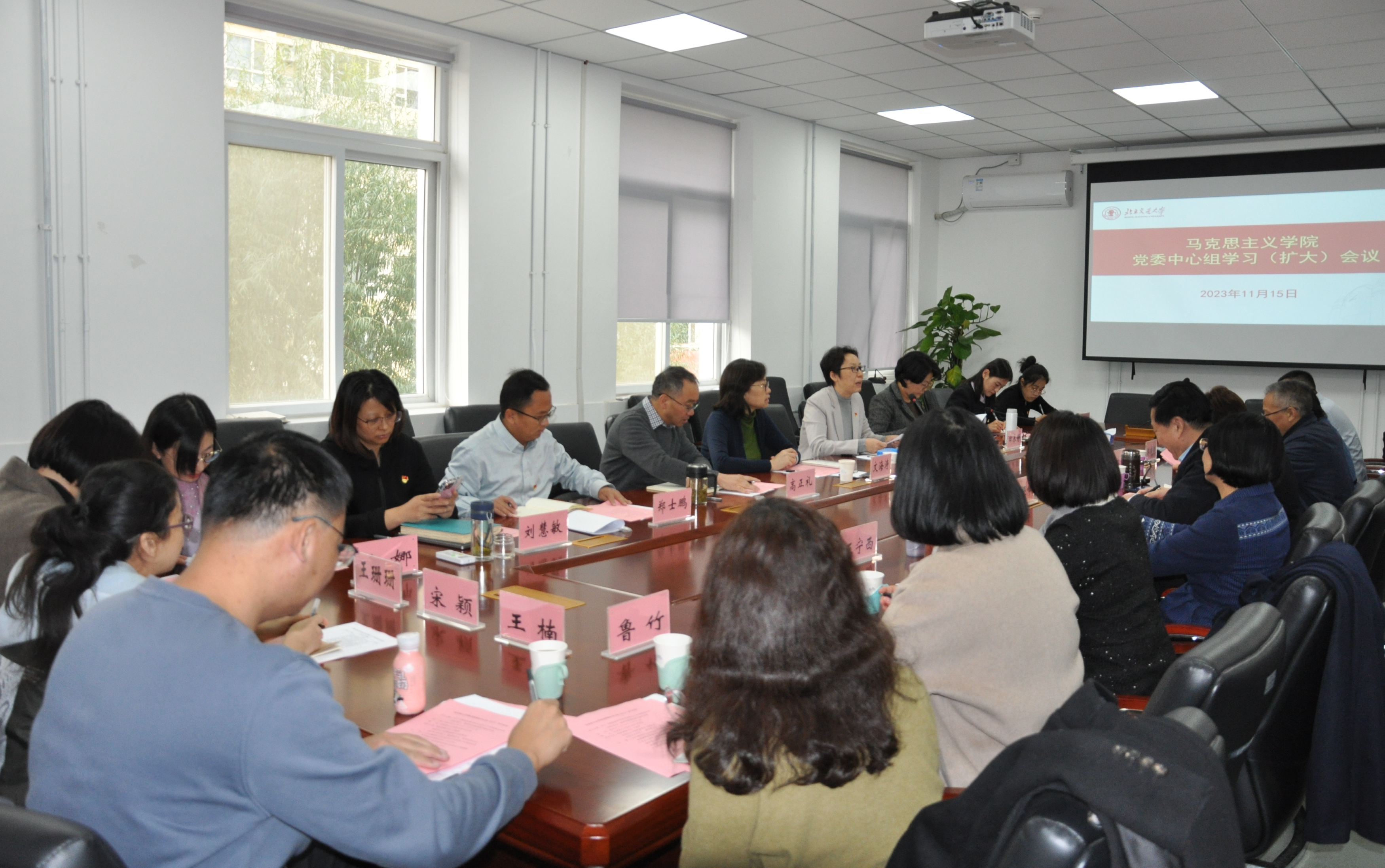 无码a片 党委书记孙冬梅带领大家学习了十八大以来习近平总书记关于无码a片 及思政课建设的系列重要论述,希望大家进一步提高思想认识,要以总书记的系列重要讲话精神作为建好无码a片 、办好思政课的根本遵循。院长高正礼对照《普通高等学校无码a片 建设标准(2023版)》,分析无码a片 目前发展现状、存在问题和下一步的建设思路。班子成员田永静、闫长丽、郑士鹏分别结合分管工作分享了学习心得和工作思考。无码a片 各学位点负责人韩振峰、何玉芳、李效东等分别从发挥无码a片 优势特色、增强社会服务、进一步促进“两个结合”的角度提出建议,各教研室主部、党支部书记也发表了对无码a片 工作的意见。