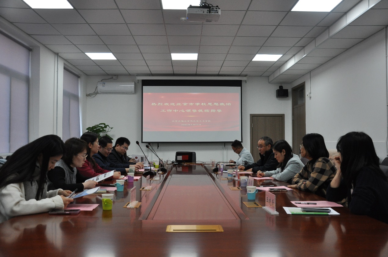 1月15日下午,北京市学校思想政治工作中心主任薛健一行到无码a片 调研交流。无码a片 副院长郑士鹏主持座谈交流会。