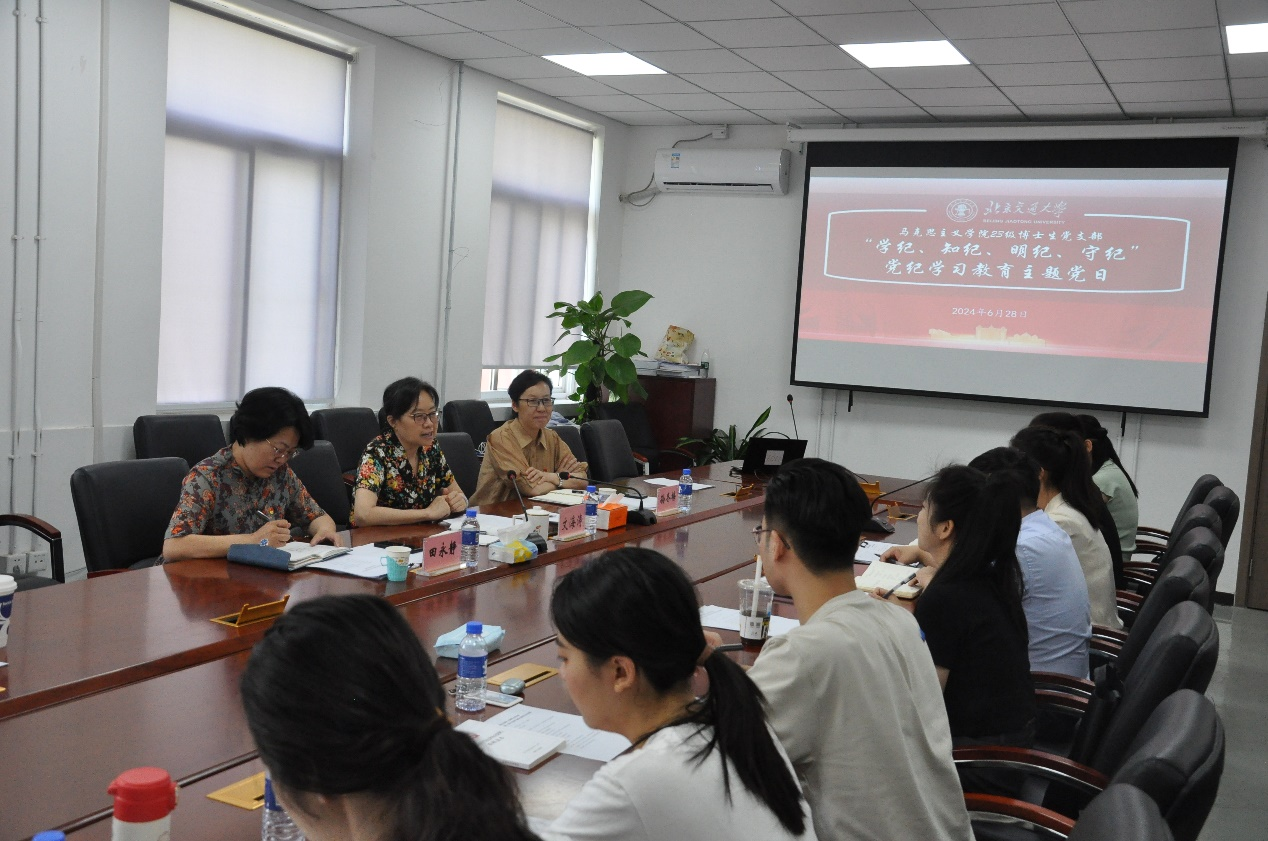 2024年6月28日,马克思义无码a片 2023级博士生党支部召开“学纪、知纪、明纪、守纪”党纪学习教育主题党日活动。校党委副书记文海涛参加本次党日活动并对支部工作进行指导。