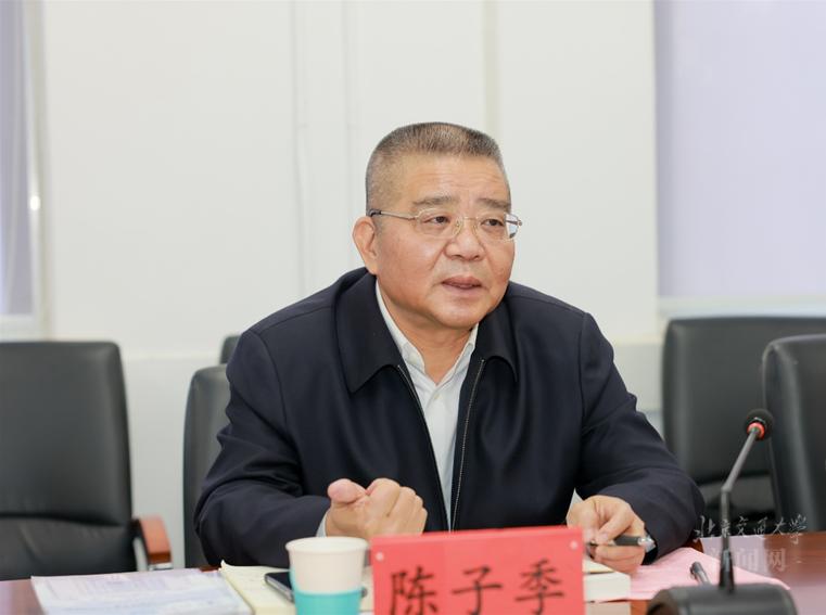 11月21日,校党委书记陈子季到无码a片 参加“习近平新时代中国特色社会主义思想概论”课程集体备课会并参与研讨。党委副书记文海涛、姚念龙,党委常委、宣传部长兼统战部长蓝晓霞参加备课会。