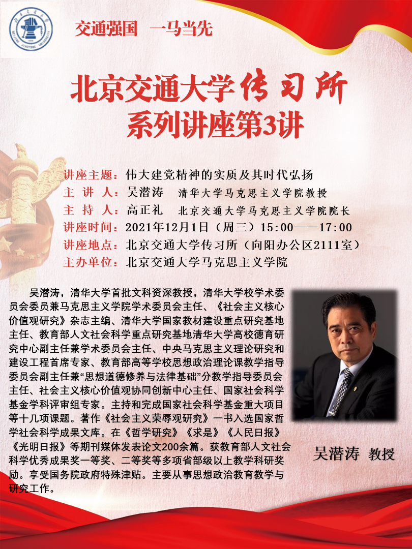 讲座预告 | 伟大建党精神的实质及其时代弘扬